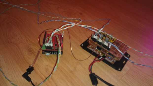 Elegir un gabinete de proyecto y algunos cables. Usé alambre de ethernet, porque: es barato, es largo, ha base de trenzada y es lo que tenía en mano. Combinando el + 5V y tierra los cables de los servos, que terminó solamente necesidad de 8 conductores a cada unidad. Es útil, ya es exactamente cuántos alambres en un cable ethernet. Seguir un patrón estándar cuando se Cablee cada luz por lo que son intercambiables y no cometes errores diferentes en cada uno (por lo menos tus errores será constante).