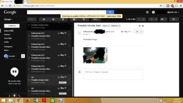 - Para ejecutar el módulo de cámara de seguridad en el Edison, utilice el código embebido y modificar para actualizar la dirección de correo electrónico y contraseña.