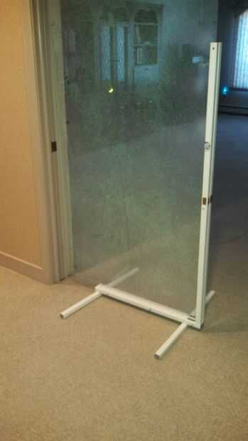 Marco - un gran pedazo de plexiglás probablemente es demasiado flojo para estar bien sin un marco de apoyo. Lexan (policarbonato) es rígida pero puede ser más frágil (y es típicamente más costoso). Puede construir un marco de pie o colgar la pantalla de un apoyo aéreo. Tuve que construir una estructura permanente, puesto que estaba usando el exterior de este efecto.