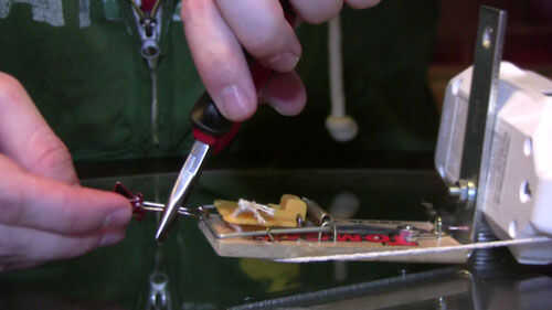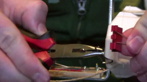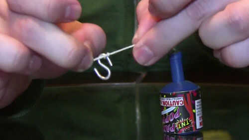 Para que no tengamos que atar el popper del partido a la barra de captura de la trampa, después de que se ha establecido (que es muy peligroso), tenemos que un sistema de enganche para que apenas nos podemos enganchar a la barra de capturas. Así que tome un clip pequeño carpeta y quitar uno de sus brazos de metal (solo aprieta con unos alicates). Entonces el brazo del lazo la captura de la trampa bar y vuelva a colocar el clip binder. Para terminar el sistema de enganche, atar un gancho en s en la cadena de popper del partido. Ahora debería poder conectarlo fácilmente a la barra de capturas.