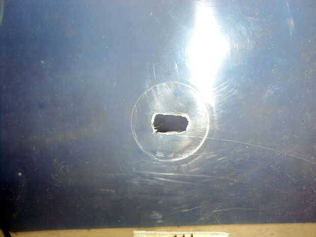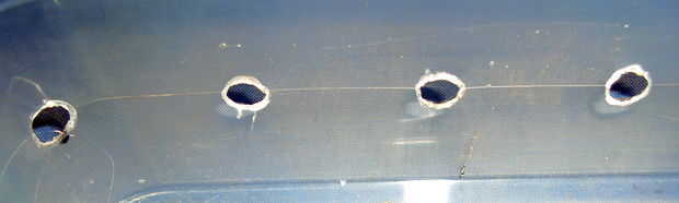 Medido a 1 pulgada espaciamiento y salió el soldador caliente y empezó a hacer agujeros.