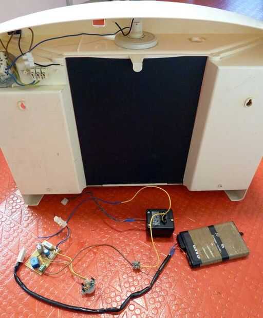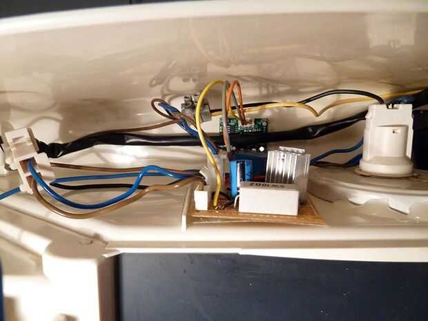 Este paso será sólo tiene sentido si le sucede que tiene una luz de vanidad que es similar a la mía, así que no paso demasiado tiempo en explicaciones aquí. Básicamente, he conectado a los componentes, caliente había pegado las piezas pesadas para el caso no sonajero alrededor y atornillada en el sensor de movimiento. Si algo sale mal, puedo fácilmente quitar la batería, el transformador o la tarjeta de circuitos para la solución de problemas. Los ganchos de luz de vanidad hasta la red como cualquier otra luz. Supongo que sabes lo que funciona en su país. Estoy en Europa, por lo que me postulo con la red de 230v a.c.. La luz de vanidad incluye un enchufe con conexión a tierra para secadores de pelo y como bien como un interruptor que todavía podía usar para apagar la luz y el sensor de derivación.