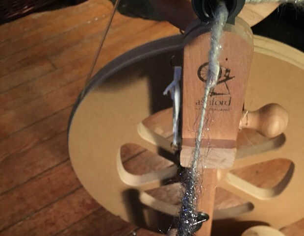 Mientras que como el hilo conductor de la pesada de Adafruit, para este proyecto quería usar hilo blanco. Tomé el hilo conductor muy fino que tenía y los otra vez para obtener un hilo más pesado IMPLICITAS que primero en dos camas individuales (2 capas) y que vuelva a manejados. La foto de arriba muestra el hilo inicial y el resultado después de los navegan - resulta que esto es cosas grandes y bastante barato en comparación. Utilicé la rueca para esto y se sorprendió lo rápido que tenía mi hilo conductor.