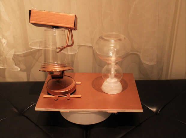 En este juego, onda las manos sobre los sensores de luz para controlar la velocidad y el giro del motor y tratar de conseguir todas sus canicas (o granos) en la taza. Para una versión multi-player, tiene cada jugador elige un color o se turnan para jugar y tiempo mutuamente. Construir versiones intercambiables con diferentes temas, múltiples historias, añadir más sensores, etc..