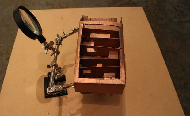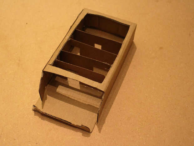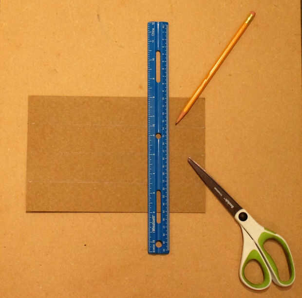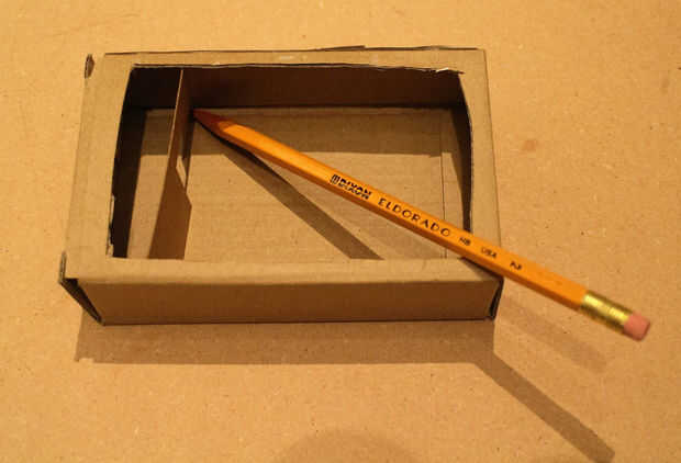 3. medir el ancho de la caja, cortar listones de cartón para caber la anchura de la caja y corte orificios en los listones de maze.