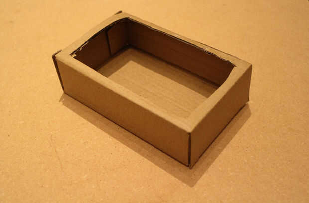 1. corte un agujero en la parte superior de la caja de cartón (envase del laberinto).
