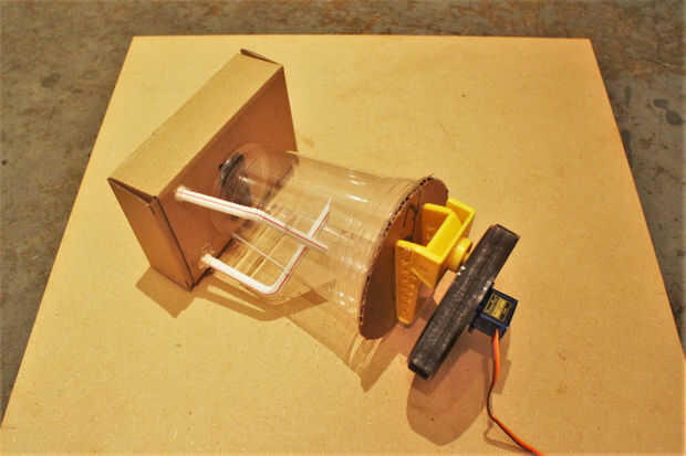 Para una versión más simple, caliente pegamento la taza plástica directamente en los brazos de servo motor.