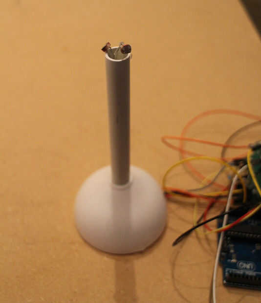 3. orientar los sensores en diferentes direcciones en la parte superior del soporte. En esta versión, uno hace frente directamente hacia arriba y la otra horizontalmente hacia fuera hacia el usuario.