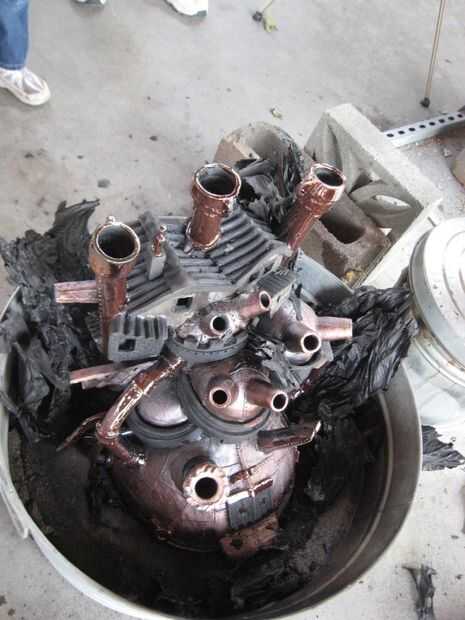 Cuando nos tiró el papel, y vi que el cobre hermoso casi cayó. La pieza logró hacerlo a través de todo este proceso y no explotar y el color resultó perfecto! Todo lo que se rompió fue un ala cuando ponemos la lata sobre la parte superior derecha después de salió del horno. Me las arreglé para pegar más tarde y aún no puedes decir! Me puse tan dang que suerte en este caso no lo pude creer.