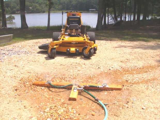 Primera prueba del rociador. Los looks de la gran bestia amarillo encendido, fingiendo desinterés.