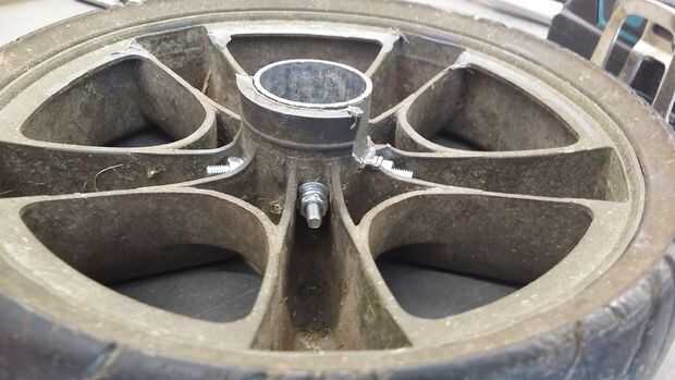 - Instale la rueda, arandela y tuerca, asegúrese de no sobre apretar.
