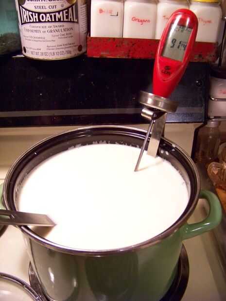 Vierta el galón de leche en la olla y añada el ácido cítrico mientras revuelve. Seguir revolviendo mientras calentar la mezcla a 90° F