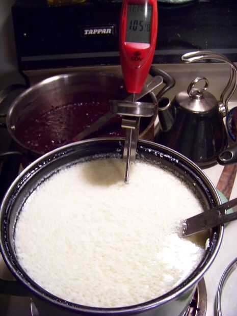 Calentar removiendo a 105° F, luego tomar calor y continuar revolviendo durante 3-5 minutos más.