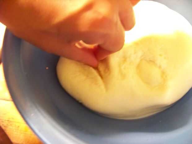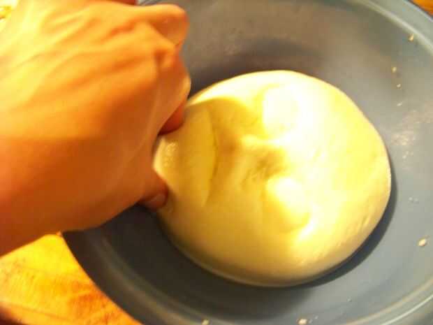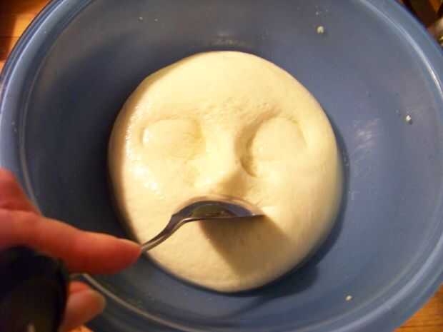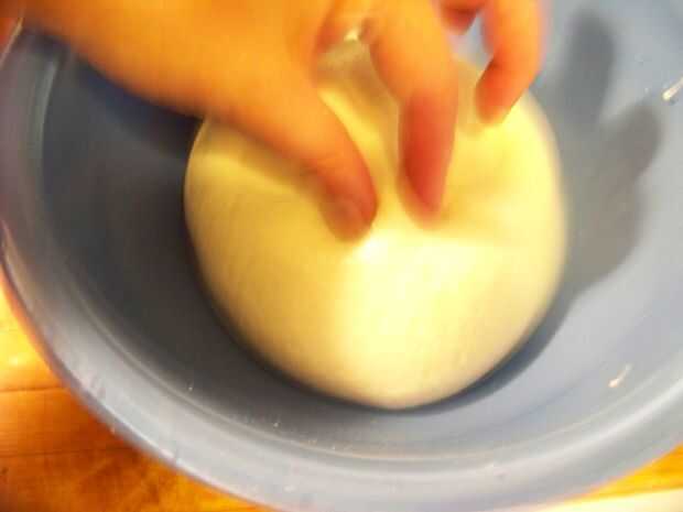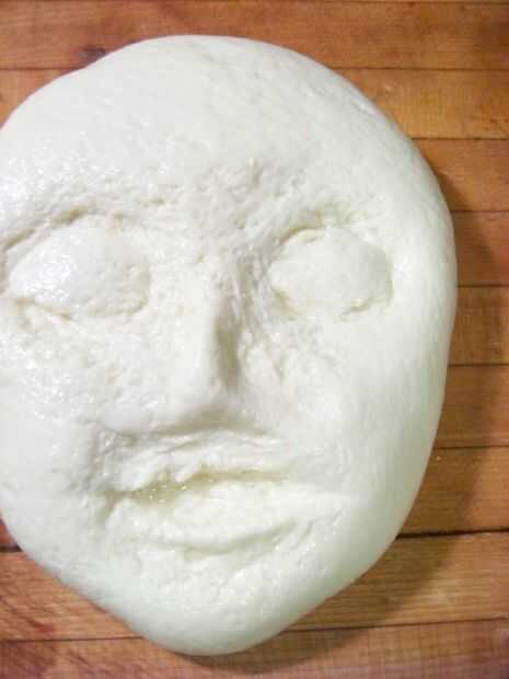 Trabajando en un recipiente poco profundo, la forma la mozzarella en un óvalo con forma de huevo. Con una cuchara, forme los ojos presionando firmemente un extremo de la cuchara en la mozzarella. Continuar, usando el borde de la cuchara (ver fotos), hasta que se han formado dos ojos.