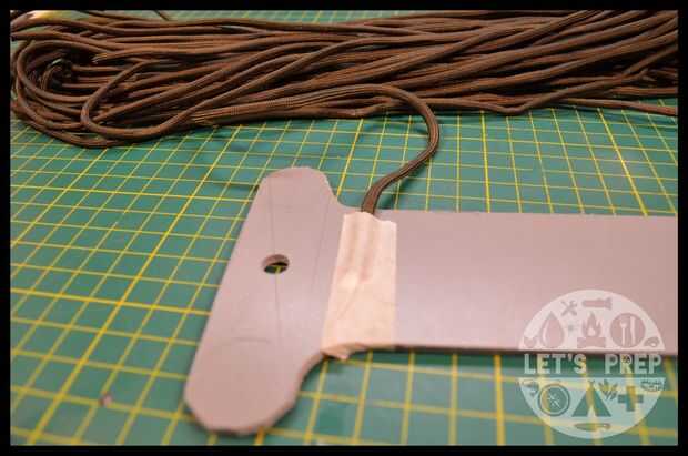 OK, hemos llegado a la parte más tediosa de este proyecto. Tomar una tira corta de cinta de pintor y se usa para fijar un extremo de paracord para el organizador.