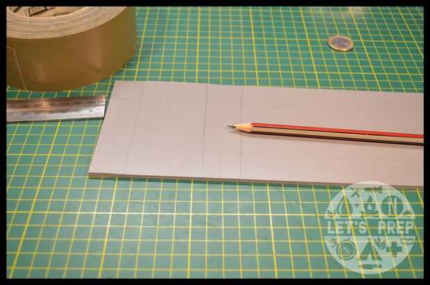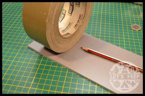 Usar el rollo de cinta adhesiva para obtener el ancho para la parte de cinta del conducto y la marca con el lápiz. Con la moneda usted puede encontrar la anchura correcta para el segmento medio separador.