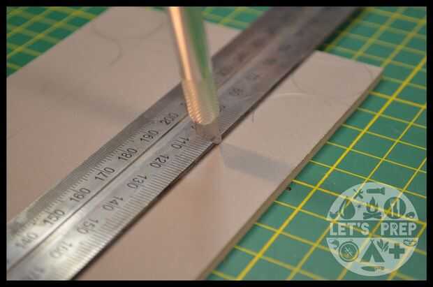 Normalmente utilizo un cuchillo X-acto de cuchillo fino para las reducciones rectas largas. Usted necesitará unos cortes para obtener a través del material. Si ha elegido la madera u otro material puede utilizar una herramienta apropiada.