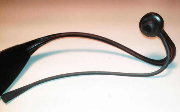 Ahora que los brotes están apagados, es necesario recortar la diadema. Cortar la venda en el área donde enrarece hacia fuera. Algunos de la cinta quedará atrás para apoyar el nuevo cable. En caso de duda, dejar más atrás. Siempre puedes tirm más si es necesario. Utilicé unas tijeras de cocina robusto para cortar mi cabeza... Probablemente podría utilizar unas tijeras cortacables. No recomendaría un vio - pero supongo que podría funcionar. Siguen siendo suaves al trabajar estos pasos. Esta unidad es una pieza barata de electrónica de Hong Kong. Por lo que es no es exactamente resistente!
