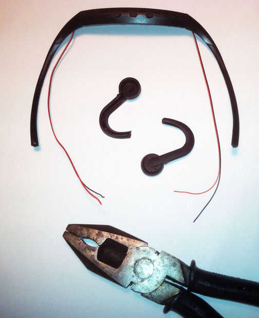 Ahora llega el momento para algo de creatividad. Estaremos colocando el alambre grueso revestido en la posición donde estaba la diadema. Realmente vamos a hacerlo un poco más largo para acomodar varios tamaños de cráneo. Usted tendrá que experimentar con tiempo para hacer el cable. Hice mis 8 pulgadas de largo. (ver siguiente paso) Más tarde, había recortado hasta 7 pulgadas.