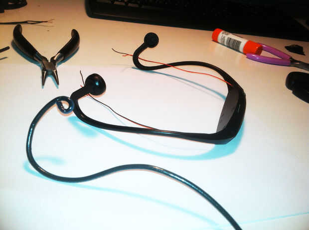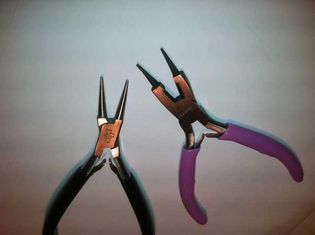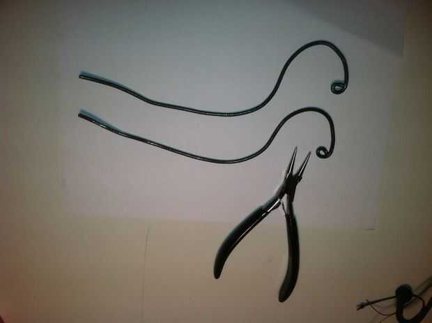 He utilizado unos alicates de punta para el pequeño bucle que se utiliza como un "guardián" de la curva. Mi esposa tenía alguna aguja especial alicates utilizados para la fabricación de la joyería de la nariz. No tienen "dientes" y las piezas de la nariz son cónicas en perfil. Por lo que puede doblar alambre alrededor sin dañar ni estropear el cable que está trabajando. Muy agradable tener. Para hacer la curva para el área de oído, gratis puede mano o utilizar una técnica de envoltura alrededor de un taco etc.... Usted necesitará doblar el cable caiga en posición y mímico la forma de la montura antigua. Sin embargo al final quedará abierto con el auricular colgando suelto en su cable. Esto agregará mucha flexibilidad al tamaño/tamaño de la unidad. Extremo del cable donde luego colgar audífonos tendremos un bucle para ayudar a "mantener" los audífonos. Ver foto.