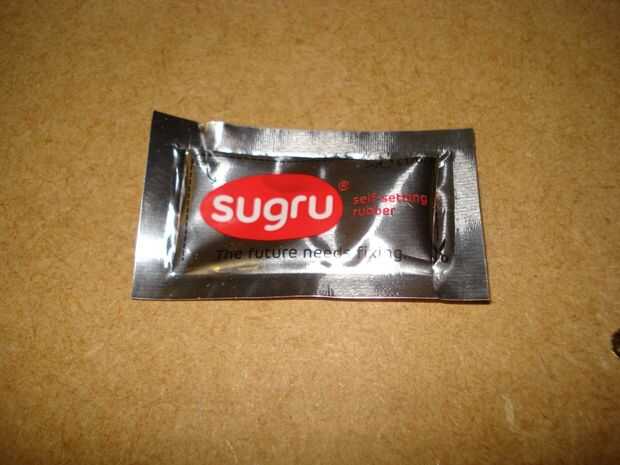 las correas de goma de la hombrera, que debe proteger la superficie del violín, disuelven con el tiempo. Se utilizó un paquete de Sugru para arreglarlo. Una envoltura de plástico ayudó a que el Sugru no se pegue a la madera; el Sugru se puede modelar