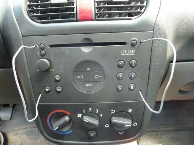 Retire la unidad de CD y Radio (RACDU): tienes que aflojar los tornillos en cada esquina. A continuación, puede insertar las herramientas de eliminación (o compra, o puede hacerlos usted mismo: Adviértase---las herramientas uno mismo hecho pueden rayar su radio si no encajan bien).