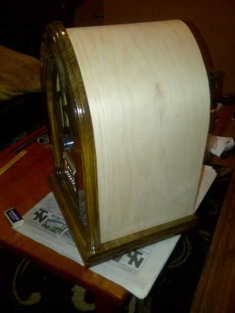 Comience con la radio en su lado y utilice un pedazo de tela para cubrir la chapa. La tela será no sólo evitar quemar la madera con el hierro, pero también pesa la pieza hacia abajo para que no se mueva en usted.
