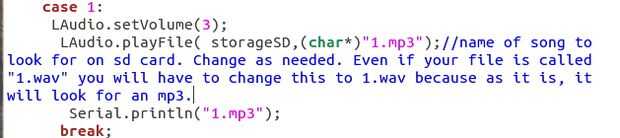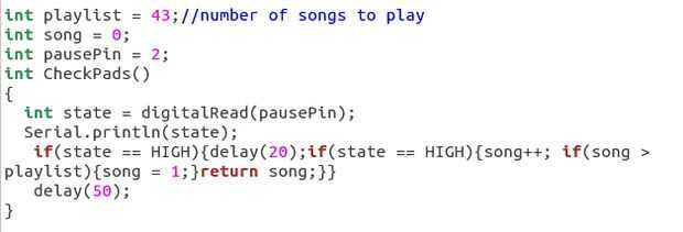 A continuación es el código que necesita levantarse el reproductor de MP3 y funcionando. Básicamente es lo que hace es esperar a que presione un botón. Una vez lo comienza a tocar la primera canción en la lista. Al pulsar otra vez jugará otro.