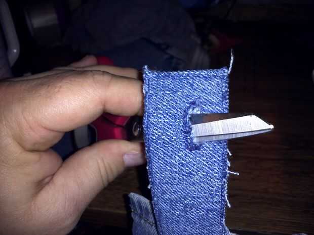 Mi ojal haber sido cosido encima, llegó el momento de corte abierto. Terminé agarrando mi maquinilla de afeitar recta para esto porque tijeras me asustaron en este proceso.