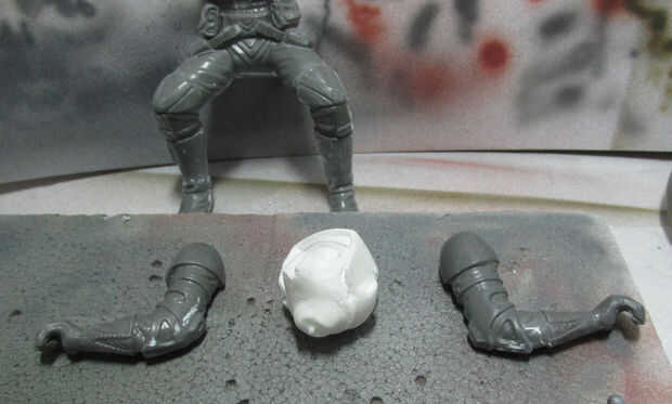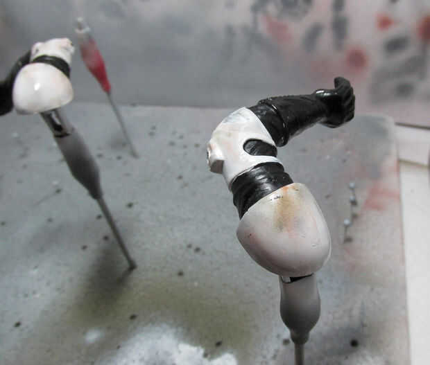 I utiliza un aerógrafo para pintar las piezas armadas y agregó la suciedad y las manchas (que pueden limpiar un uniforme blanco).