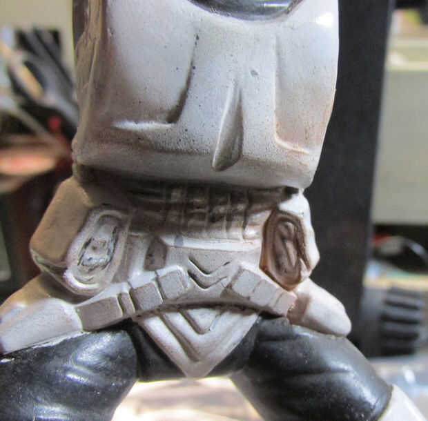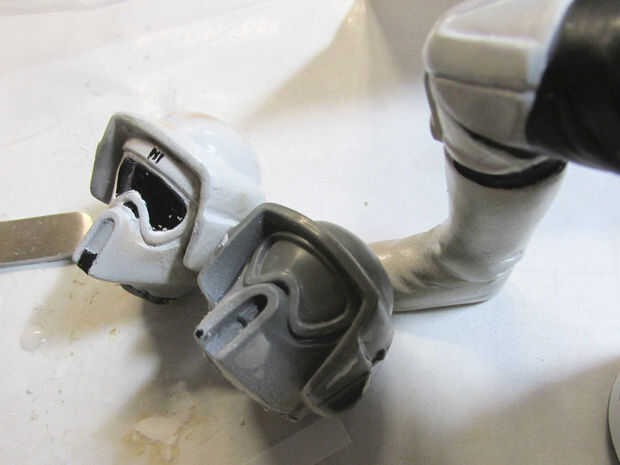 Lo siguiente que debemos hacer es reemplazar la nueva cabeza pintada la cabeza original. Corte la cabeza con una sierra de calar Exacto. Cola gruesa de CA fue el mejor pegamento para utilizar en este punto.