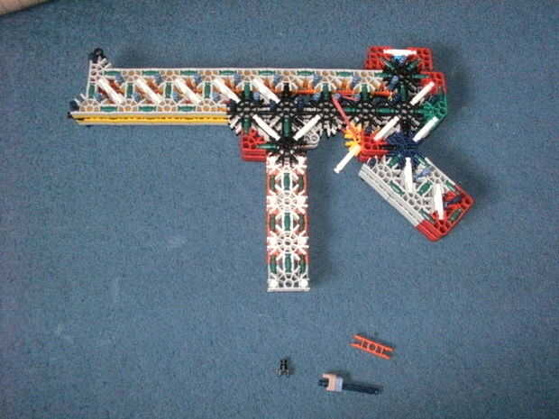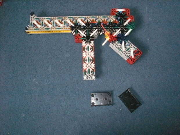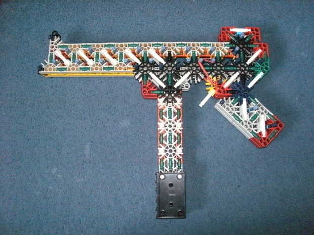 este es mi smg KVG que hice algún tiempo atrás. No es demasiado potente y precisa a larga distancia pero es ligero y fácil de llevar.Utiliza barras de blanco/de plata que caben en la revista pero la mejor anmmo son las barras de amarillo/marrón que p