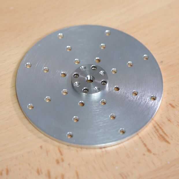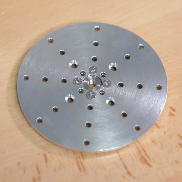 Antes de instalar la nueva placa base, fije una placa de tornillo de rosca que con (4) tornillos de cabeza plana de 6-32 x 1/4". Tenga en cuenta que los tornillos se irán por el lado que tiene los orificios avellanados y en los orificios roscados de la placa de tornillo. La placa del tornillo debe ser orientada para que el jefe pasa por el orificio central de la placa base.