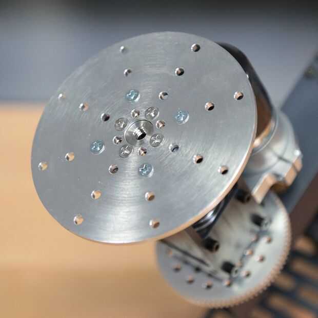 Con los tornillos que la placa base original sobre el pan y tilt, instalar la nueva placa base. Ahora estará listo para sujetar su MPT1100 SS un trípode (o cualquier otro montaje de la cámara que utiliza un tornillo de 1/4-20 o 3/8-16).