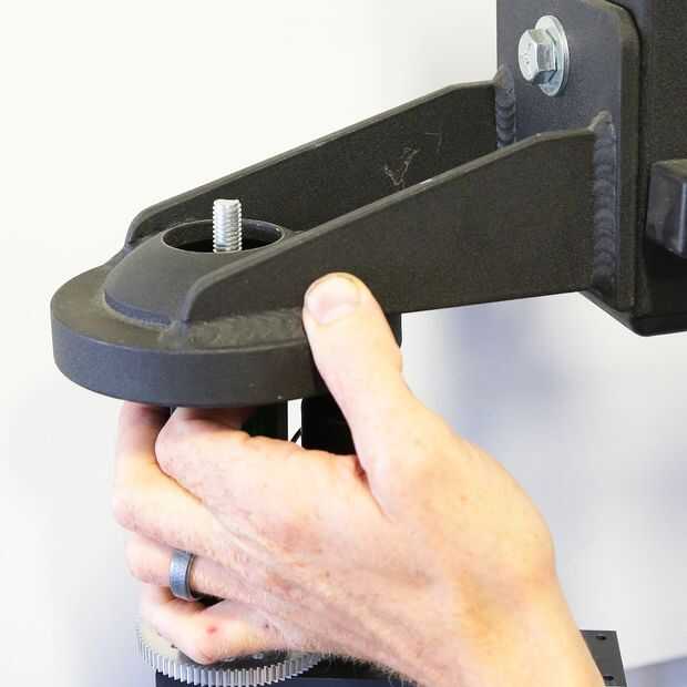 Los MPT1100-SS es un compacto bucle abierto pan y tilt de sistema que es bueno para cámaras DSLR, videocámaras y cámaras de tamaño similares. La configuración del stock es propicia para colocar una grúa de horca, pero aquí una simple solución para aq
