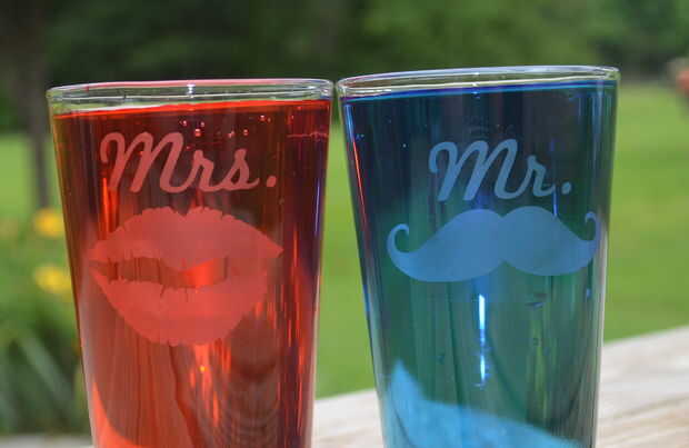 Sr. & Sra. grabados vasos son una gran decoración para cualquier boda. El método de vidrio grabado en este tutorial se puede aplicar a cualquier tipo de vidrio; hacer gafas de Sr. y Sra. vino, copas de champagne o lo que quieras!
