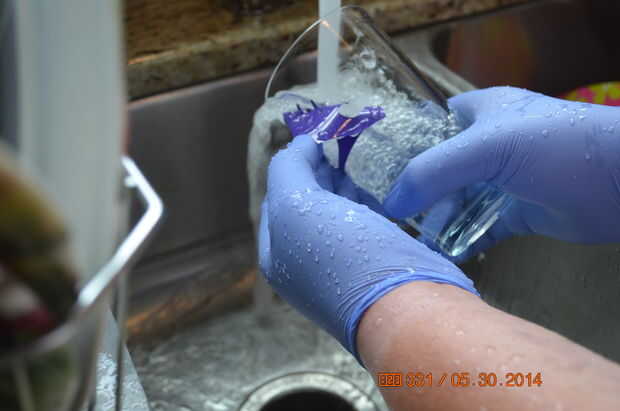 El último paso en la aguafuerte es despegarse de la plantilla. La forma más sencilla de hacerlo es permanecer en el fregadero y retire la plantilla bajo el agua. Saldrá mucho más fácil!