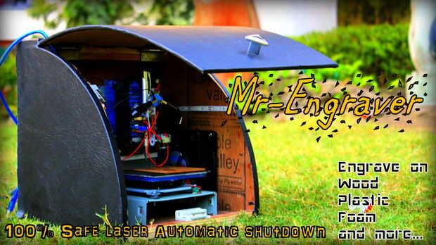 Haz "Mr.Engraver"! La máquina de grabado del laser desktop portátil DIY. El grabador puede grabar en madera y plástico, corte a través de hojas de espuma y papel. La máquina se puede utilizar para hacer toneladas de trabajo creativo, el único límite es la imaginación (además de la zona de trabajo).