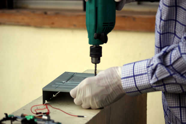 2) Taladre los orificios con una broca de metal de 5mm y las "rebabas" de la arena
