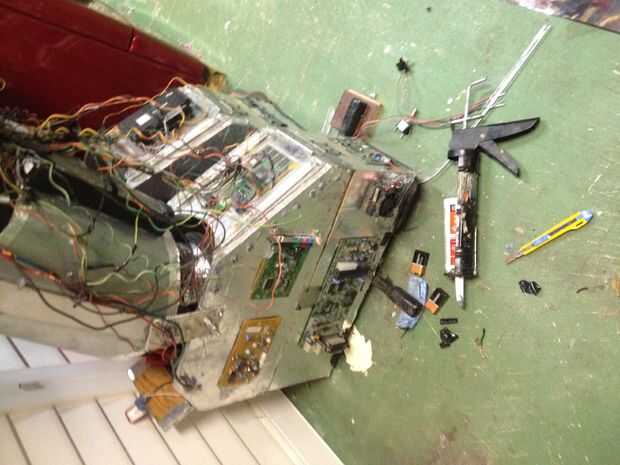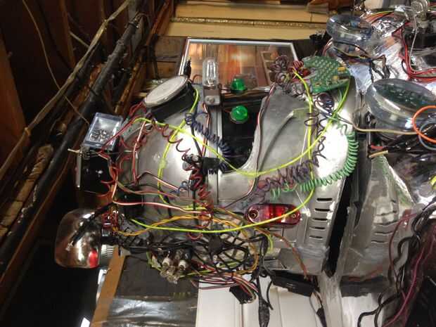 Hey allí! Yo quería hacer algo único para hasta el próximo cumpleaños de mi papá, y esto es lo que se me ocurrió. Lo llamo Robo hombre. Su luz de ojos y en su voz de robot habla "Domo Arigato Sr. Roboto"Lo siento las fotos no son super claras -