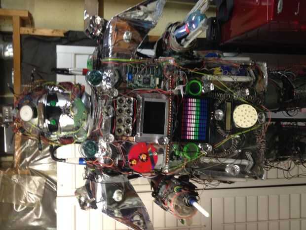 Hey allí! Yo quería hacer algo único para hasta el próximo cumpleaños de mi papá, y esto es lo que se me ocurrió. Lo llamo Robo hombre. Su luz de ojos y en su voz de robot habla "Domo Arigato Sr. Roboto"Lo siento las fotos no son super claras -