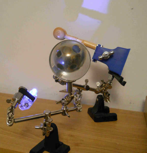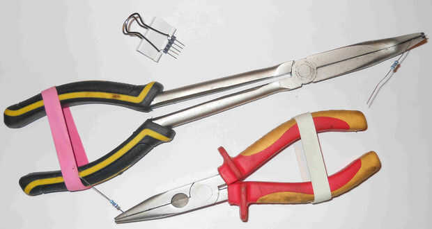 Uso de agarres, pinzas y una banda de caucho, o similar, no los dedos, para sujetar piezas mientras que la soldadura