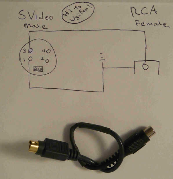 En vez de bajar el color, es posible conectarse MRETV luminancia en una conexión de S-video. Esto evita ajustes de color y consigue una señal muy clara. Mi nuevo amigo Ugifer, que sólo conocí aquí en Instructables, señaló esto hacia fuera. Era demasiado bueno no para agregar de inmediato. Hice un pequeño cable para adaptarse de RCA a S-video y agrega las fotos a este paso. Esto permite flexibilidad como algunas marcas de TV no tienen conexiones de S-video. Gracias otra vez Ugifer!