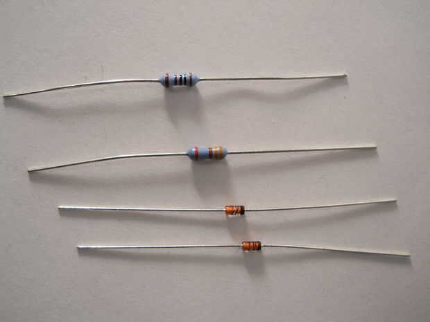 Al final de un diodo con la raya a una de las resistencias de la soldadura. Repita con el otro diodo y resistor.