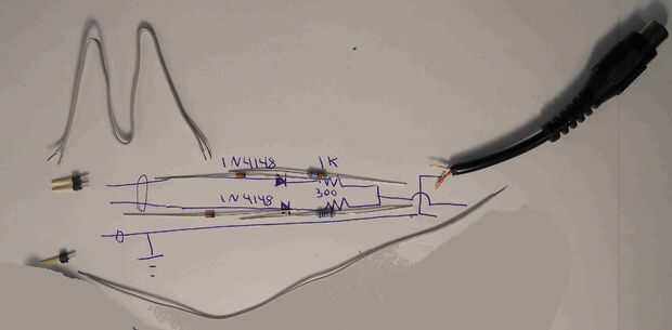 La soldadura de plomo en el extremo libre de cada diodo para conectar a los pines de Arduino 1 y 2. Utilizando cable blindado es una buena práctica pero no noto la diferencia cuando no.