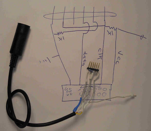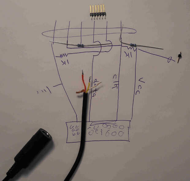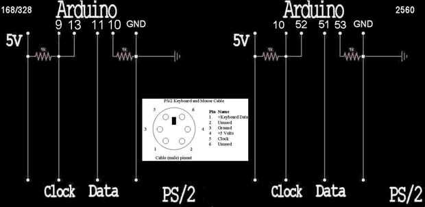Probablemente está utilizando un teclado mayores o ratón así que asegúrese de que funcionan correctamente antes de que les de la reanudación. Corte el cable del teclado es rápido y funciona. Dejar unas pocas pulgadas del extremo del enchufe por lo que puede ser reconectado para probar si es necesario. Un conector PS/2 es difícil de encontrar, yo corte una extensión de teclado viejo para conseguir minas. Me gustaría hacer una pequeña tabla para traducir los pines de Arduino a las 4 líneas de PS/2 que me permita cambiar entre teclados y ratones diferentes fácilmente. Las estructuras del puerto de teclado son todos similares y fácilmente hecho con hombre pernos encabezado (o mujer si usa el ICSP).