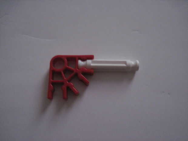 este es mi MSMG (Masterdude Sub Machine Gun). Tiene un gatillo de verdad y como la mayoría de mis armas es semi automatico (hay cierta controversia sobre el semi-auto término pero segun me K'nex que significa que cada vez que el gatillo se dispara un