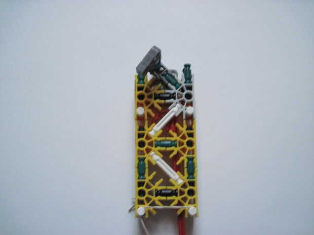este es mi MSMG (Masterdude Sub Machine Gun). Tiene un gatillo de verdad y como la mayoría de mis armas es semi automatico (hay cierta controversia sobre el semi-auto término pero segun me K'nex que significa que cada vez que el gatillo se dispara un