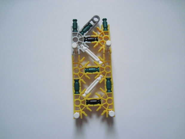 Imagen 1: Agregar barras de blanco. Imagen 2: Coloque las partes hechas antes como se muestra. Imagen 3: Cubrir con la parte hecha antes. Imagen 4: Revista terminada con munición y pin en su lugar.