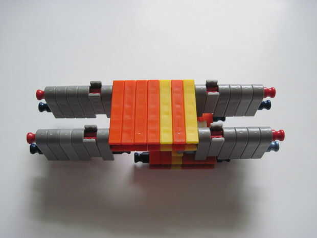 Imagen 1: 2 de las partes hechas antes y añadir 7 conectores naranja.